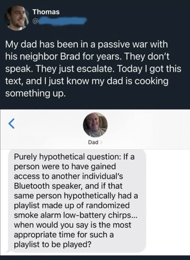 Start it at night when his bedroom light goes off for him to sleep. Let it go for approximately 30 seconds after his light turns on so he gets up to check then cut it off. Repeat until you’re tired enough that’s it’s no longer worth the joy. You can also raise the volume slowly when he decides he’s going to sleep through it and deal with it tomorrow