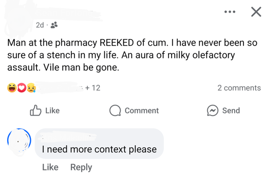 I worked at the dollar store and some lady came in reeking of cum. I can agree, it’s a very obvious and noticeable smell. 🤮