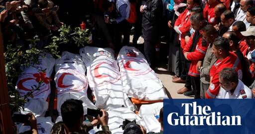 According to the UN humanitarian affairs office (Ocha), the Palestinian Red Crescent (PRCS) and civil defence workers were on a mission to rescue colleagues who had been shot at earlier in the day, when their clearly marked vehicles came under heavy Israeli fire in Rafah city’s Tel al-Sultan district. A Red Crescent official in Gaza said that there was evidence of at least one person being detained and killed, as the body of one of the dead had been found with his hands tied."