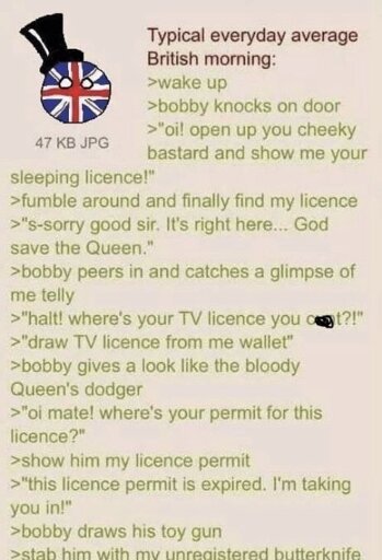 I can’t believe the TV license is real. I just can’t. I guess it helps makes good tv tho