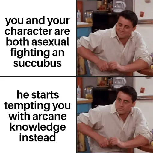 I’m asexual IRL and can confirm arcane knowledge is irresistible. You can often find me reading dusty old tomes from the past. The dustier the better.
