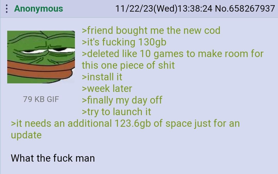 arrow-up15arrow-down1imageAnon wants to play CoDsh.itjust.works🍹Early to RISA 🧉@sh.itjust.worksM to Greentext@sh.itjust.works · 2 years agomessage-square5linkfedilink