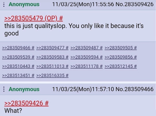 arrow-up1312arrow-down1imageThe word "slop" has been taken full circlefiles.catbox.moemudkip@lemdro.id to Greentext@sh.itjust.worksEnglish · 13 days agomessage-square11linkfedilink