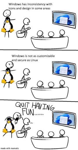 arrow-up193arrow-down1message-squareFire memes as I help my friends move to Linuxplus-squareiqarwone@reddthat.com to Linux@lemmy.ml · 14 days agomessage-square34linkfedilink